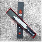 Překrásný všeobecně použitelný nůž Petty ze série Kanetsune AUS 10 PRO series. Nůž Petty je užitečnou alternativou velkého šéfkuchařského nože v okamžiku kdy potřebujete přesné řezy, nebo například krájení zelených fazolí nebo jiné menší zeleniny a ovoce. Jsou vhodné též pro špikování a krájení masa. Zaoblené ostří umožňuje mírné kývání při řezu. Jeho ostrost je ideální pro přípravu sendvičů všeho druhu. Čepel je vyrobena z kvalitní japonské nerezové oceli AUS-10, která obsahuje 0,95 - 1,10% uhlíku a dobře vyvážené složení molybudenu, vanadu a dalších legur. Tato nerezová ocel má vynikající odolnost proti korozi a houževnatost, tvrdost je HRC 59-60. Základní a jednoduchá rukojeť z materiálu Plywood má vynikající přilnavost a vysokou odolnost proti opotřebení. Fulltangová konstrukce (čepel nože prochází celým nožem a rukojeť je pronýtována 3 nýty) zaručuje celkovou konstrukční pevnost.