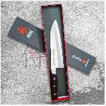 Velice ostrý japonský nůž Santoku ze série Kanetsune Hon-Warikomi YS-900 series s jádrem z mimořádně tvrdé švédské oceli Sandvik 19C27, které je vložené mezi 2 vrstvy nerezové oceli SUS 410. Kuchyňský nůž SANTOKU je bezohledný kuchyňský válečník, který je připraven na všechna vaše přání. Japonské slovo "santoku" se zhruba označuje jako "tři ctnosti", což svědčí o všestrannosti tohoto nožového stylu a druhu řezů, kterým vyniká (řezání, rozkrájení a mletí). Čepel je obvykle kratší než kuchařský nůž s výrazně odlišnou geometrií. Nůž Santoku je často prohlašován za fúzi mezi šéfkuchařským nožem a Nakiri, což vám přináší výhody obou zmíněných.