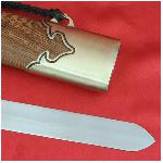 Kvalitní cvičný meč Tai-chi s nebroušenou čepelí je vyroben z nerezové pružné oceli, která je ideální pro dynamický trénink. Rukojeť s kovovou zdobenou záštitou je vyrobena z ušlechtilého palisandrového dřeva Sissoo Wood a zakončena kovovou zdobenou hlavicí. Meč je dodáván v ozdobném dřevěném pouzdru s kovovým zdobením. Cvičení s mečem je vynikající pro relaxaci, odbourání stresu, zlepšení rovnováhy a koordinaci pohybů v rámci meditativních sestav.