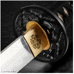 Kovaný meč Hanazuke je esteticky výrazná replika určená pro nadšence do japonské historie a studenty bojových umění. Čepel je vyrobena z překládané uhlíkové oceli AISI 1075, která díky vrstvení vytváří na povrchu unikátní kresbu. Pro zvýšení dynamiky při nácviku je čepel opatřena žlábkem Bo-Hi, jenž optimalizuje vyvážení meče. Povrch ostří zdobí leštěná imitace kalicí linky (hamon), která doplňuje tradiční hrot Chu-kissaki s Diamond Shaped Yokote.