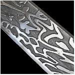 Tato kovaná replika katana typu shinogi-zukuri je vyrobena z prověřené uhlíkové oceli AISI 1045. Jako esteticky hodnotná replika meče katana v naší nabídce vyniká tento model vizuálně atraktivní 3D imitací damaškového vzoru na čepeli. Meč najde své uplatnění jako dekorace, ale je vhodný i pro aktivní nácvik technik bojových umění. Vzhledem k absenci parciálního kalení a tvrdosti 48 HRC je tato sportovní replika určena pro studium forem a pohybů, nikoliv pro sekání tvrdých materiálů. Robustní konstrukce s rukojetí potaženou pravou rejnočí kůží zajišťuje autentický pocit při manipulaci.