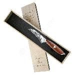 Rukojeť ve stylu západního typu je vyrobena z luxusního dřeva Rose-Wood, které je ceněno pro svou odolnost a estetickou přitažlivost. Bohatá, teplá kresba tohoto vzácného dřeva dodává každému noži jedinečný charakter. Přírodní textura Rose-Wood vytváří nádherný kontrast s damascénskou čepelí a zároveň poskytuje pevný a pohodlný úchop. Díky ergonomickému tvaru s ozdobným středovým nýtem rukojeť zajišťuje perfektní stabilitu a vyváženost při krájení. Rosewood je často spojován s luxusem, dlouhověkostí a precizností, což z něj činí vysoce ceněný materiál mezi sběrateli i mistry řemesla. V mnoha kulturách je považován za symbol elegance, síly a vytrvalosti.