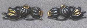 This is a pair of menuki made from alloy that shows a plant. The menuki were painted in black and gold.