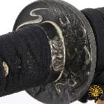 The Oni are mythical creatures from Japanese folklore similar to western demons or trolls. In modern culture they are beginning to move away from this menacing connotation into the role of guardian or protector, similar in character to gargoyles. Their power and ferocity, however, have not diminished. There is a Japanese saying which translates to “Oni with an iron club”, or to be of an invincible nature, a fitting association with the 29” L6/Bainite blade on which our Oni Katana is built. The blade features the geometry of our Performance Series for outstanding cutting ability. The 14” tsuka is wrapped in black ray skin and silk ito while the Koshirae feature Oni in various classical styles. A unique combination of folklore and functionality.