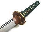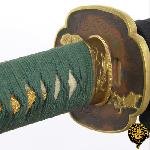 The Praying Mantis is a symbol of cunning and power in Japanese culture and is consequently a highly respected theme in Samurai swords. Built on our new L6/Bainite blade (detailed below) in the Shobu Zukuri style with Bo-Hi, and featuring superb koshirae, the Praying Mantis is a very desirable and functional piece. The subdued green silk ito and deep brown of the lacquered saya provide handsome contrast to the dark copper and golden accents of the tsuba, fuchi and kashira. The stalking mantis lies in wait for his next prey, mirroring the power and grace in this exceptional katana.