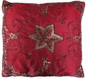 dekorační, ručně vyšívaný, bohatě zdobený potah na polštářek v barvě bordó