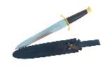 nefunkční replika renesanční historické dýky s koženou rukojetí a koženou pochvou, v provedení starožitná patina