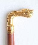 dekorativní vycházková hůl z masivního dřeva a s rukojetí ve tvaru hlavy draka