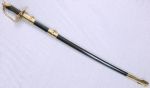 replika historické jezdecké šavle americké kavalerie s černou koženou rukojetí s mosazným košem v kovové pochvě v černé barvě s mosaznými úchyty