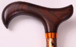 lehká, plně funkční vycházková hůl z tvrzeného hliníku v barvě hnědo zlaté a s černou ergonomickou rukojetí, umožňující dokonalé opření ruky